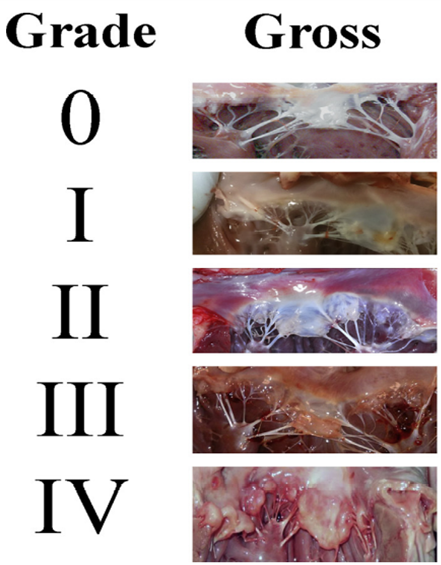 그림 Mitral valve의 myxomatous한 변화. Grade 1 : leaflet에 개별적인 결절 존재