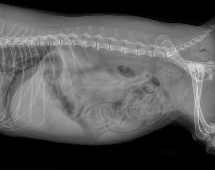 따라서 우선적으로 영상 검사를 통해 주요 원인을 감별하고자 복부 방사선 촬영과 초음파 검사를 진행하였습니다.