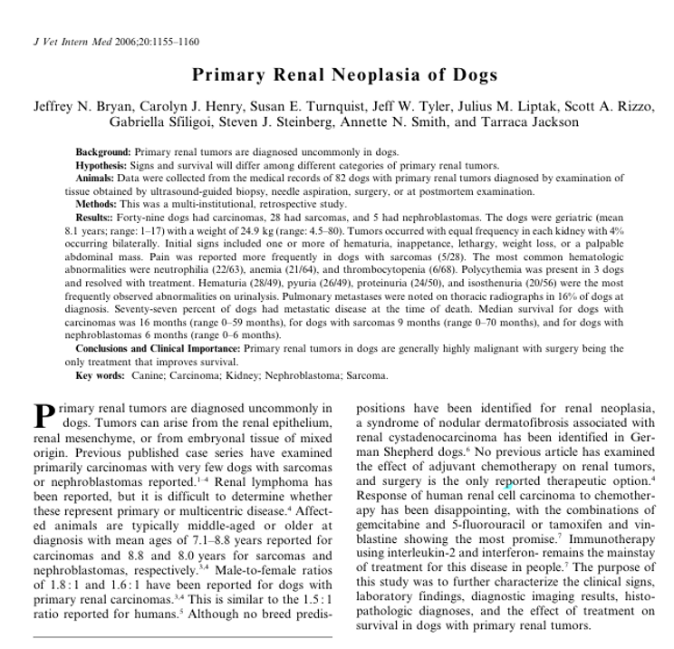 신장 원발성 종양을 진단했을 때 외과 수의사가 가장 먼저 고민해야 할 부분은, 해당 신장을 그대로 두었을 때의 위험성과 수술로 제거했을 때의 위험성을 비교·평가하는것입니다.