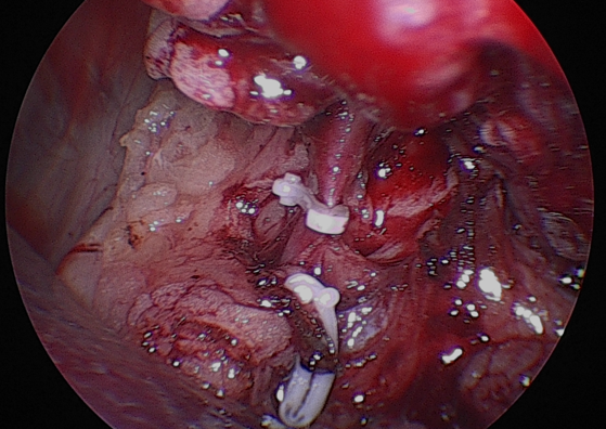 이어서 신동맥역시 같은 방법으로 둔성박리 후 클립 결찰후 절단하였습니다.
