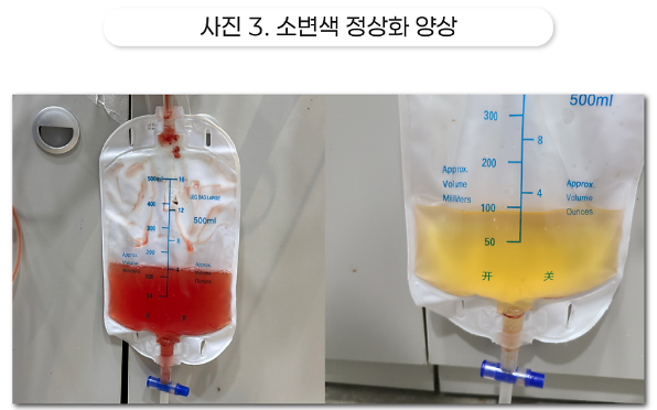 이후 요도카테터를 통한 소변 배출이 원활하게 이루어졌습니다.
