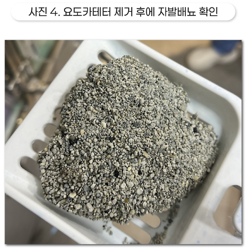 호두는 소변 색이 정상화되어 요도 카테터를 제거하였고, 곧 화장실에서 큰 감자가 발견되어 무사히 귀가할 수 있었습니다.