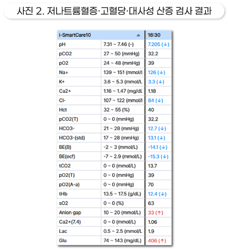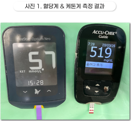 검사 결과 공주(가명)는 당뇨성 케톤산증(DKA) 이라는 응급 질환으로 진단되었습니다.