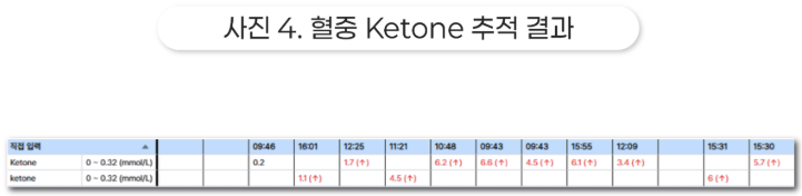 케톤 수치: 5.7에서 0.2까지 떨어져 정상화