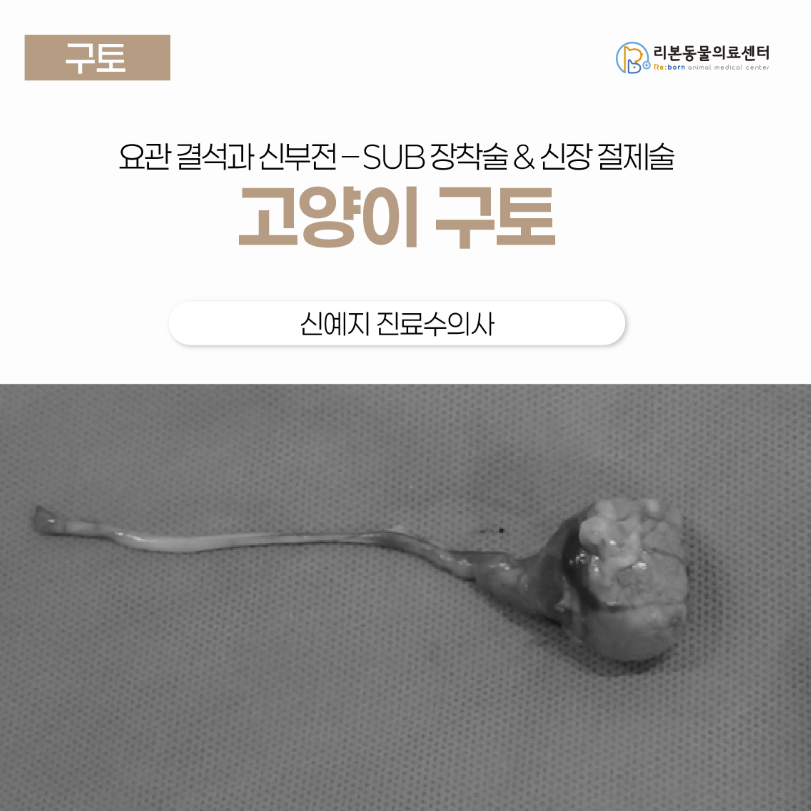 - 수술 후 체계적인 요량 모니터링과 수액 처치를 통해 신장 수치가 정상으로 회복되었으며 향후 정기적인 SUB 플러싱 관리와 처방 식이를 통해 남은 신장 기능을 건강하게 유지할 예정입니다.