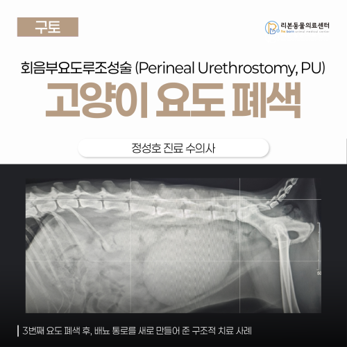 [본문 한 눈에 보기] ✅ 5세 고양이가 세 번째 요도 폐색으로 내원해 본원에서 안정을 거친 뒤 회음부요도루조성술(PU)을 시행했습니다. ✅ 수술은 음경 원위부를 절제하고 회음부에 새로운 배뇨 통로를 형성하는 방식으로 진행되었습니다. ✅ 수술 5일째 배뇨 곤란이 완전히 해소되어 퇴원했고 4개월 후까지 합병증 없이 안정적으로 배뇨 중입니다. 내원한 이유 &진단 이번 환자는 5세령의 고양이로 과거에 고양이 특발성 방광염(FIC) 진단을 받은 이후 수년간 약 3회 재발을 겪은 병력이 있었습니다. 이번에도 배뇨곤란 증상으로 내원하였습니다. 신체검사에서 복부 내 방광이 과도하게 팽만되고 단단하게 촉진되었으며 이는 요도에 물리적 폐색이 발생하여 방광에서 소변이 배출되지 못하고 있다는 의미입니다. 이에 복부 방사선 검사를 시행한 결과 영상상에서도 심하게 확장된 방광이 확인되었습니다. 요도 폐색, 특히 완전 폐색은 보호자분들이 그 심각성을 체감하지 못하는 경우가 많지만 매우 치명적인 응급상황입니다. 실제로 보고에 따르면 폐색이 발생한 후 2~3일 이내에 요독증(uremia)이 나타날 수 있으며 3~6일 내에는 사망에 이를 수 있다고 합니다. 따라서 이번 환자 역시 내원 직후 즉시 요도 폐색 해소, 혈역학적 안정 확보 그리고 대사적 불균형 교정을 최우선 목표로 치료를 진행하였습니다. 초기 처치 우선 요도 폐색 해소를 진행하였습니다. 요도카테터를 조심스럽게 삽입해서 요도 내 폐색물을 방광 쪽으로 밀어냈습니다. 앞서 언급했듯이 요도 폐색은 심각한 대사성불균형을 초래할 수 있는 응급 질환입니다. 이에 즉시 혈액검사를 통해 전해질 및 대사 상태를 평가하였습니다. 검사 결과 경도의 고젖산혈증(hyperlactatemia)이 확인되었으나 다행히 요독증(uremia)이나 대사성산증(metabolicacidosis)과 같은 주요 이상은 관찰되지 않았습니다. 수술 요도 폐색 자체가 응급 상황이지만 회음부요도루조성술(perinealurethrostomy, PU) 자체는 즉각적인 응급 수술에 해당하지는 않습니다. 따라서 이번 환자 역시 수술 전 초기 처치를 통해 전신 상태를 안정화한 후 계획적으로 수술을 진행하였습니다. 이번에 시행한 PU 수술은 음경의 원위부(distalpenis)를제거하고 요도를 회음부(perinealarea) 쪽으로 개방하여 새로운 배뇨 통로를 형성하는 수술입니다. 쉽게말해 수컷 고양이는 요도 내강이 매우 좁아 폐색이 잘 생기기 때문에 암컷 고양이처럼 넓은 요도 구멍을 만들어주는 수술이라고 이해하면 됩니다. 수술은 다음 순서로 진행되었습니다 :항문 아래 피부를 절개합니다. 요도 주변 근육과 인대를 절개하고 요도를 노출합니다. 요도에길게 절개를 내고 절개된 요도 점막을 피부와 연결해 새로운 배뇨 구멍을 만듭니다. 음경 끝 부분을 제거하고 피부를 봉합합니다. 이 환자에게 수술이 추천되었던 이유 이번 환자에게 회음부요도루조성술(PerinealUrethrostomy, PU)이 추천된 이유를 이해하기 위해서는 먼저 고양이 특발성 방광염(FelineIdiopathicCystitis, FIC)과 수컷 고양이에서의 요도 재폐색(urethralre-obstruction) 발생률에 대한 이해가 필요합니다. FIC는 최근 연구에서 유전적 요인과 환경적 스트레스가 복합적으로 작용해 발생하는 질환으로 알려져 있습니다. 따라서 수의사가 해줄 수 있는 치료는 환경 개선을 통한 스트레스 감소, FIC 처방식(힐스c/d stress)급여, 그리고 통증 조절을 위한 진통제 투여 정도에 한정됩니다. 또한 FIC는감염이 동반되지 않은 비세균성 질환인 경우가 많기 때문에 이런 경우에는 항생제 투여가 불필요합니다. 이러한 점을 고려하면 FIC 자체를 완전히 치료하거나 재발을 완벽히 예방하는 것은 불가능하다는 것을 알 수 있습니다. 문제는 FIC 환자의 약 28.6~58%에서 요도 폐색(urethralobstruction)이 발생한다는 점입니다. 그리고이 요도 폐색은 3~6일 이상 지속될 경우 사망에 이를 수 있는 치명적인 응급 질환입니다. 더 큰 문제는 병원에서 폐색을 해소하더라도 재폐색이 매우 흔하다는 것입니다. Journalof FelineMedicineand Surgery(2008)에 발표된 연구에 따르면 요도 폐색을 경험한 고양이의 약 36%에서 재폐색이발생했으며 그중 절반 이상은 반복적이고 심한 재폐색으로인해 안락사에 이르렀다고 보고되었습니다. 실제로 이번 환자 역시 첫 요도 폐색 이후 이번이 세 번째 재발로 내원한 사례였습니다. 대표적인 합병증으로는 피부염(scalding), 요실금, 요로감염(UTI), 요도구협착(stenosis) 등이 있으며 그발생률은 수술자의 숙련도와 술기 완성도에 따라 달라집니다. 과거에는 요도구협착이 약 25%에서 발생한다고 보고되었지만 최근에는 요도를 bulbourethralgland 수준까지 충분히 절개하는 표준 술기 확립으로 약 6%까지 감소한 것으로 알려졌습니다. 또한 장기적으로 가장 흔한 합병증은 요로감염(UTI)이며 연구에 따라 17~58%의 발생률이 보고되었으나 최근 장기 추적 연구에서는 대부분 경미하거나 일시적이었고 90% 이상의 보호자들이 수술 후 삶의 질 개선에 만족한 것으로 보고되었습니다. 따라서 PU 수술은 합병증의 위험이 전혀 없는 수술은 아니지만 적절한 시점과 술기로 시행된다면 충분히 예후가 양호한 치료법으로 평가됩니다. 아쉽게도 