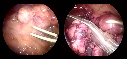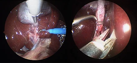 카메라를 통해 더 뚜렷하게 시각화할 수 있고 지혈 기구를 통해 장기들을 안전하게 분리하여 절제할 수 있습니다.