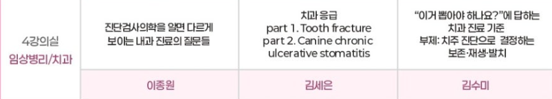 내과, 외과, 영상, 임상병리, 응급, 안과 등