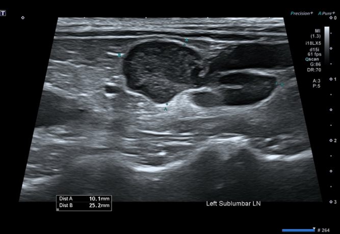 그림 1. 복부 초음파에서 확인된 요추하 림프절 비대