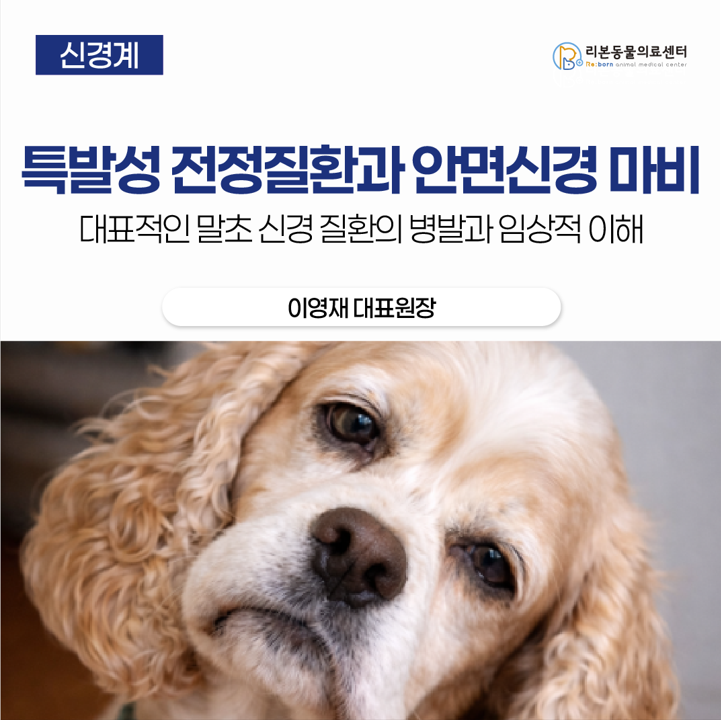 개에서 급성으로 발생하는 신경학적 이상은 중추신경계와 말초신경계 질환으로 구분할 수 있으며 그중에서도 대표적인 말초 신경 질환으로 특발성 전정질환(Idiopathic Vestibular Syndrome, 이하 ‘IVS’)과 특발성 안면신경 마비(idiopathic facial paralysis, 이하 ‘IFP’)가 있습니다. 두 질환 모두 갑작스럽게 증상이 시작되고, 진행성 경과를 보이지 않으며, 비교적 안정적인 예후를 가진다는 공통점이 있습니다[1,2].
