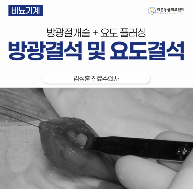 → bladder 및 urethra 결석 제거를 위한 수술(cystotomy + urethral flushing)을 시핼하였습니다.