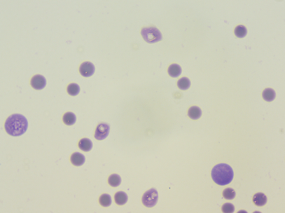Figure 2. 혈액 도말상 확인되는 spherocyte.