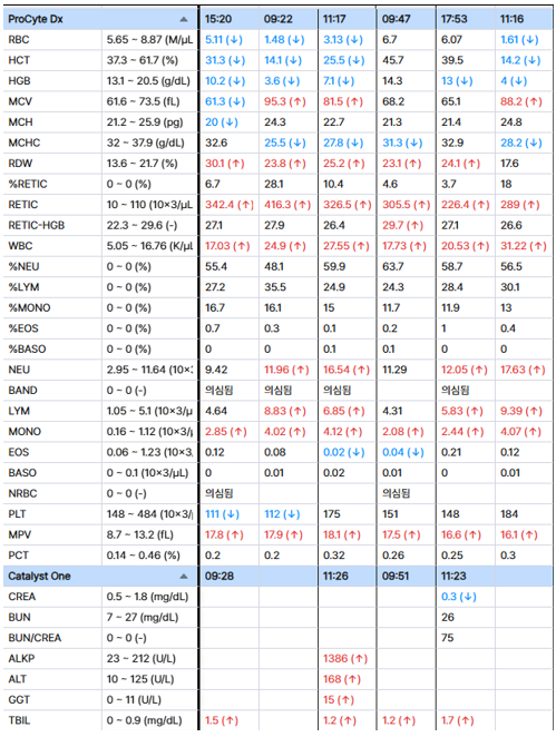 Figure 8. 2차 수혈 후 혈액 검사 모니터링