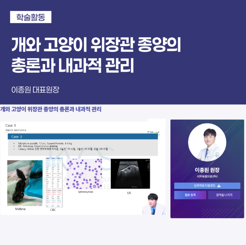 이번 강의는 개와 고양이 위장관 종양의 총론과 내과적 관리를 주제로 진행됩니다.