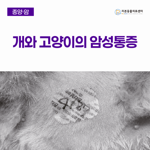 많은 반려동물 종양 환자는 이미 암이 진행된 상태에서 병원을 찾는 경우가 많아, 종양세포의 침윤이나 염증 반응으로 인해 치료를 시작하기 전부터 암 관련 통증을 겪고 있을 가능성이 높습니다. 통증의 원인과 유형(체성통·내장통·신경통)에 따라 WHO 3-step analgesic ladder 원칙을 기반으로 NSAID, Opioid, 보조진통제를 함께 사용하는 다중 진통 전략(multimodal analgesia)이 적용됩니다. 리본동물의료센터 실제 진료 과정에서 사용하는 암성 통증 치료 접근인 약물 치료, 표적 치료, 지지적 치료에 대해 알아보겠습니다. 반려동물의 암은 전체 사망률의 상당한 원인을 차지하며, 단순 사망률 이상의 광범위한 영향을 미친다. 특히 암 관련 통증 (Cancer-associated pain) 은 말기 환자의 삶의 질을 현저히 저하시키는 중요한 요인 중 하나이다. 개와 고양이에서 암 통증의 정확한 유병률은 알려져있지 않지만, 반려동물과 인간의 종양이 생물학적 특성을 공유한다는 점을 고려하면, 통증 발생률은 비슷할 것으로 추정된다. 사람을 대상으로 한 연구에 따르면, 암 진단 시점 통증을 호소하는 환자는 약 30% 이며, 질병이 진행됨에 따라 65-85% 환자가 사망 전 통증을 경험한다고 한다. 개와 고양이 대부분이 초기 내원 시 이미 진행된 암 병기를 보이는 점을 고려할 때, 많은 환자들이 치료를 시작하기 전부터 이미 통증을 경험했을 가능성이 높다. 따라서 조기 통증 인지 및 적극적 완화 치료는 암 치료의 핵심 요소로 자리잡아야 한다. 암 관련 통증은 삶의 질 뿐만 아니라 세포 대사나 면역 기능 등 중요한 생리적 기능에도 악영향을 미치므로, 통증 완화는 임상적으로 최우선시 되어야 하며 수의사와 보호자 모두 통증의 병태생리, 유형, 인지 방법에 대해 이해를 해야 한다. 암성통증은 종양세포가 신경, 뼈, 연부조직, 인대, 근막을 직접 침윤함으로써 발생한다. 또한 종양 침윤으로 인한 장기의 팽창(distension) 이나 폐색(obstruction) 에 의해서도 통증이 유발 될 수 있다. 밖에도 종양세포가 유발하는 침식성 (erosive), 염증성 (inflammatory) 반응 역시 통증을 일으킬 수 있다. 만성 통증이 지속 될 경우 중추 감작에 의해 비통증성 자극에도 과도한 통증이 유발된다. 대표적 예로 이질통(allodynia), 과통증(Hyperalgesia) 등이 유발된다. 따라서 초기부터 적극적인 진통관리가 필수적이다. 암성통증은 그 원인에 따라 체성통(Somatic), 내장통(Visceral), 신경통(Neuropathic) 으로 나뉜다. 예를 들어 골육종은 심한 체성통을 유발하고, 방광/전립선 암은 내장통을 유발하며, 신경초종은 신경통을 유발할 수 있다. 뿐만 아니라 여러 형태의 통증이 복합적으로 존재 할 수 있다. (Table 1) 반려동물은 언어로 통증을 표현하지 않기 때문에, 식욕 감소, 움직임 저하, 자세 변화, 그루밍 이상 등의 행동변화가 중요한 평가 지표가 되며, 진료 시 보호자와의 소통을 통한 관찰 기록이 통증 관리의 핵심이다. <약물치료 전략> 1단계 (경증 통증) : NSAID 2단계 (중등도 통증) : 약한 오피오이드 (Tramadol, Codein) ± NSAID 3단계 (심한 통증) : 강력한 오피오이드(Morphine) ± 보조진통제 세계보건기구(WHO) 는 통증의 강도에 따라 적용할 수 있는 3step analgesic ladder 를 구체적으로 제안하고 있다. 이 통증 관리 권고안에 따르면, 대부분의 반려동물은 이미 암이 상당히 진행된 상태에서 내원하는 경우가 많기 때문에 초기부터 강력한 오피오이드와 보조 진통제를 병용하는 것이 합리적이라고 제안했다. WHO 의 단계적 접근 원칙에 따르면, 경증 통증은 NSAID 로 먼저 치료한다. NSAID 치료 시에도 통증이 지속될 경우 중등도 통증에 해당하며, 이 때는 약한 Opioid인 코데인(Codein) 이나 트라마돌(Tramadol) 을 추가 할 수 있다. 이러한 병용에도 불구하고 통증이 조절되지 않거나, 통증이 심한 경우에는 보다 강력한 오피오이드를 사용한다. Table 2 에는 병원에서 처방 후 가정에서도 쉽게 투약할 수 있는 개와 고양이용 경구 진통제 목록이 제시되어있으며, 이는 암성통증의 가정 내 관리에 활용 될 수 있다. 1. NSAID NSAIDs는 개·고양이에서 통각성 통증(nociceptive pain) 조절에 가장 기본적으로 사용되는 약물군이다. 주요 기전은 COX 효소 억제, 특히 암성 통증과 관련된 COX-2 선택적 억제를 통해 PGE₂ 생성 감소 → 말초 감작(peripheral sensitization) 감소를 유도한다. PGE₂는 통각 수용체를 과민화시켜 통각과민(hyperalgesia)과 이질통(allodynia)을 유발한다. 뿐만 아니라 일부 종양은 COX-2를 과발현하므로, NSAID 사용이 암성 통증에서 특히 유효할 수 있다. 2. Opioids 오피오이드는 μ, κ, δ 수용체를 통해 통증 신호 전달을 억제하는 강력한 진통제이다. 주요 기전은 C섬유에서 신경전달물질의 분비를 억제하고 척수 후각 뉴련의 탈분극을 억제함으로써 상행 통증 신호를 차단하는 것이다. 오피오이드 약물들은 용량조절이 용이하고 부작용 패턴도 비교적 예측 가능하다. 3. NMDA 길항제 NMDA 수용체는 척수에서 중추 감작(central sensitization)을 일으키는 핵심 요소이다. 통각수용기에서 분비된 글루타메이트에 의해 NMDA 가 활성되면 과흥분성(hyperexcitability) 증가하게 된다. 이러한 변화는 만성 암성 통증을 고착시키는 주요 기전이다. 대표적 약물으로는 