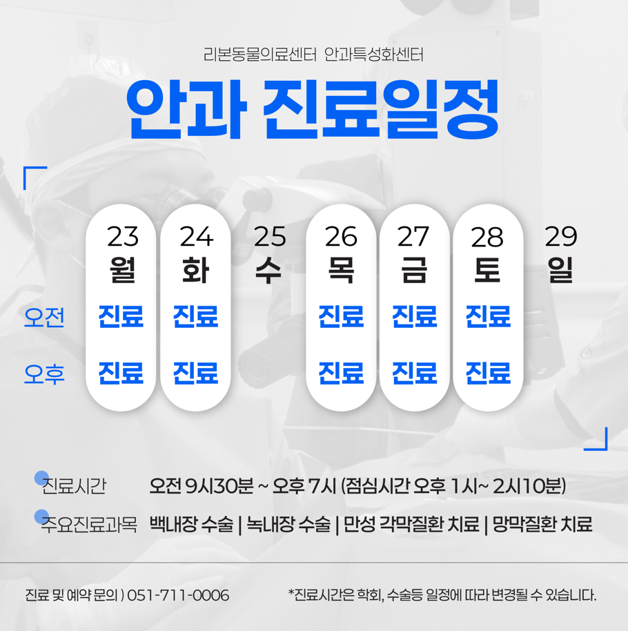리본동물의료센터 안과/치과 진료일정